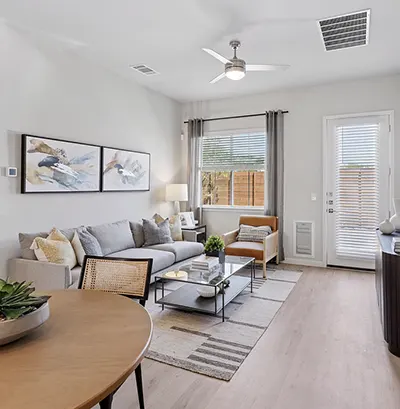 At Village at Golden Triangle, we combine modern comfort with resort-style living in Fort Worth, TX. Our single-story homes feature smart home technology, quartz countertops, luxury vinyl tile flooring, full-size washer and dryer, private backyards, and upgraded kitchen appliances. Enjoy our secure, gated community amenities like a sparkling pool and sundeck, fire pits, BBQ grill stations, pickleball court, clubhouse, and fitness center. Our pet-friendly community has an oversized dog park with pet spa, and is conveniently located near shopping and entertainment. This is where your best life beginsāschedule a tour today!
