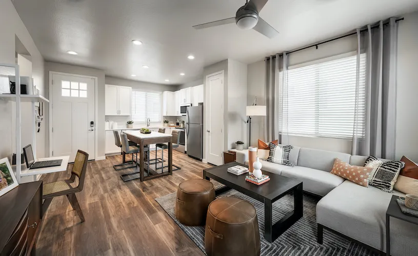 At Village at Golden Triangle, we combine modern comfort with resort-style living in Fort Worth, TX. Our single-story homes feature smart home technology, quartz countertops, luxury vinyl tile flooring, full-size washer and dryer, private backyards, and upgraded kitchen appliances. Enjoy our secure, gated community amenities like a sparkling pool and sundeck, fire pits, BBQ grill stations, pickleball court, clubhouse, and fitness center. Our pet-friendly community has an oversized dog park with pet spa, and is conveniently located near shopping and entertainment. This is where your best life beginsāschedule a tour today!